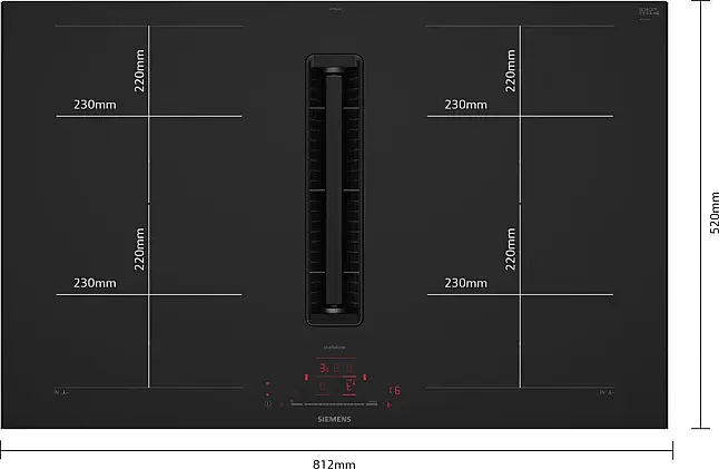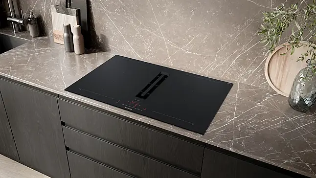 Siemens iQ700 Kochfeld mit Dunstabzug (Induktion) 80 cm Mattschwarz, Mit Rahmen aufliegend EX87BHL26E (Lager)