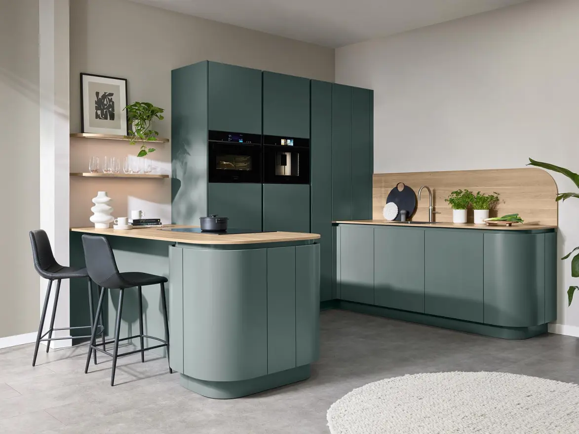 Die Modernität einer Küche zeigt sich an vielen Einzelheiten: An hochwertigen Küchenfronten mit Antifingerprint-Beschichtung, an nachhaltigen Materialien oder an dämpfend schließenden Scharnieren im Inneren der Küchenschränke. Die Innenausstattung bietet möglichst viel Stauraum. Ebenso finden Sie hier energieeffiziente und vernetzte Küchengeräte.