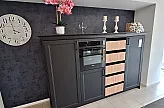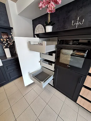 Häcker Ravenna Landhausküche mit Insel in scharz / weiß, incl. Geräte
