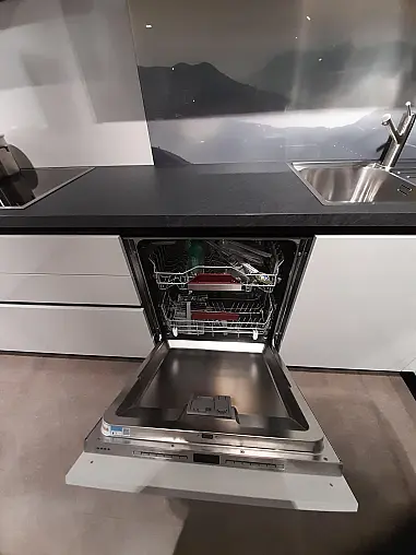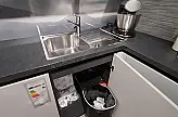 Enthalten sind eine Edelstahlspüle inklusive Mischbatterie, Abfallsammler, diverse Sonderausstattungen und die aufgeführten E-Geräte.