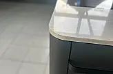 Das besondere Highlight: die stilvolle Rundung in der Kochhalbinsel. Sie verleiht dem Raum eine weiche, einladende Dynamik und setzt ein architektonisches Statement, das sofort ins Auge fällt. Nicht nur optisch ein Genuss – sie schafft auch mehr Bewegungsfreiheit und macht die Insel zum natürlichen Mittelpunkt des Raums.