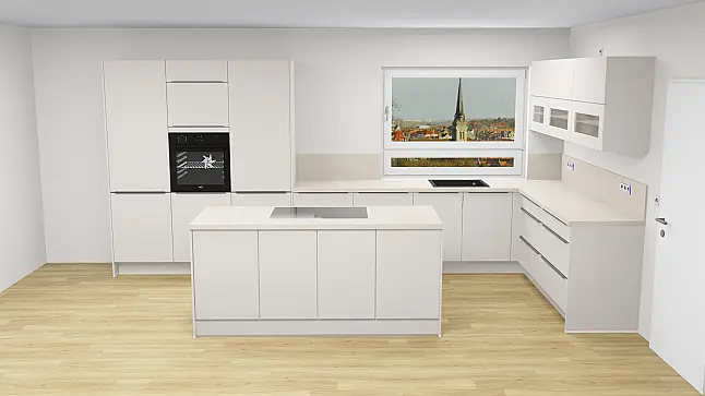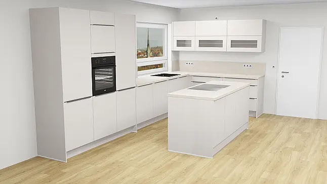 Nobilia L-Küche mit Insel Easytouch Sand 467 x 237 cm