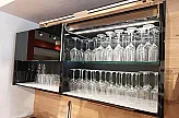 2x hochwertige Glashängeschränke, Theke, Steckdosenelement