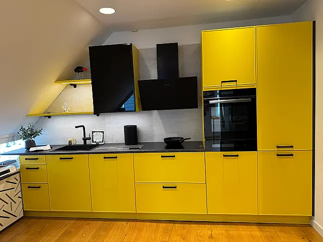 Häcker Concept 130 ! Moderne Küche im Industrial-Design, mit Zinkgelben Rahmen-Fronten