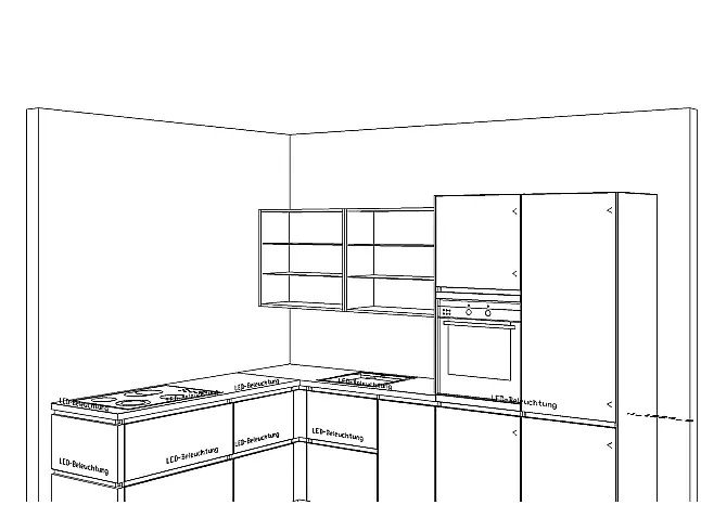 * inkl.: eingefräster Unterbodenbeleuchtung in den Hängeschränken