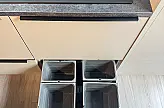 Die Nasszone ist hochwertig ausgestattet: Die Spüle BLANCO ADIRA 45 S aus langlebigem SILGRANIT in Schwarz ist integriert. Dazu gehört die BLANCO Armatur LINUS-S HD in schwarz matt.