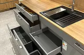- extra hohe Korpusse (845mm) mit dünner Arbeitsplatte (16mm) - - Hängeschränke mit elektrischer Öffnung/Schließung
