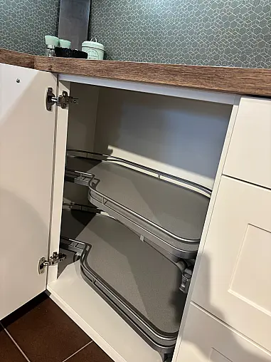 Der Stauraum ist mit dem Eck-Lemansschrank, dem Eck-Wandschrank, dem XL Korpus und den großzügigen Auszugschränken sehr gut genutzt.
