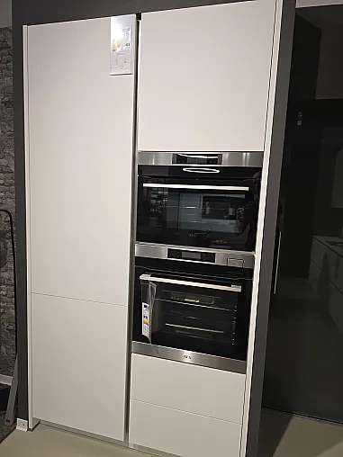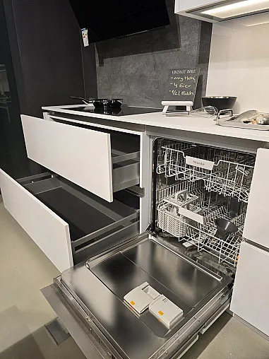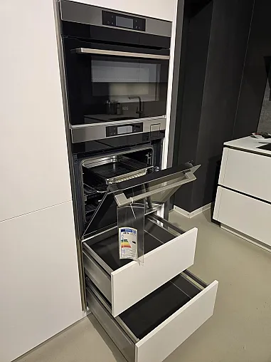 Komplett grifflos und mit Anti-Fingerprint-Oberfläche kommt die Küche mit vielen tollen Details daher: