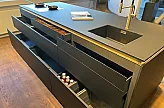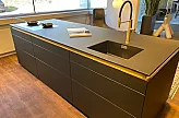 Arbeitsplatte: Fenix schwarz, umlaufende Griffmuldenbeleuchtung (LED) unter der Arbeitsplatte
