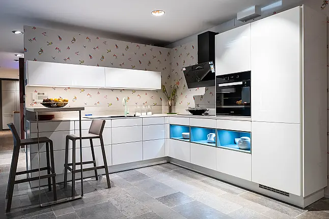 Xeno Küchen X1 9555 / X1 3382 Lackfront (Weiß Hochglanz) Grifflos