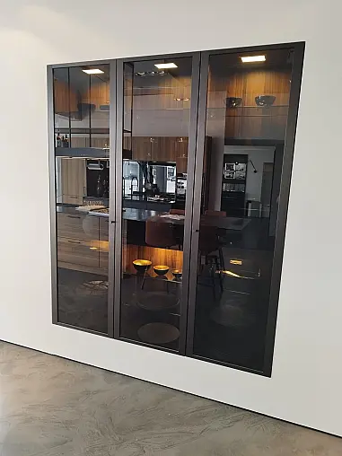 SieMatic Hochschrankelement mit Metallrahmenglastür und LED Beleuchtung