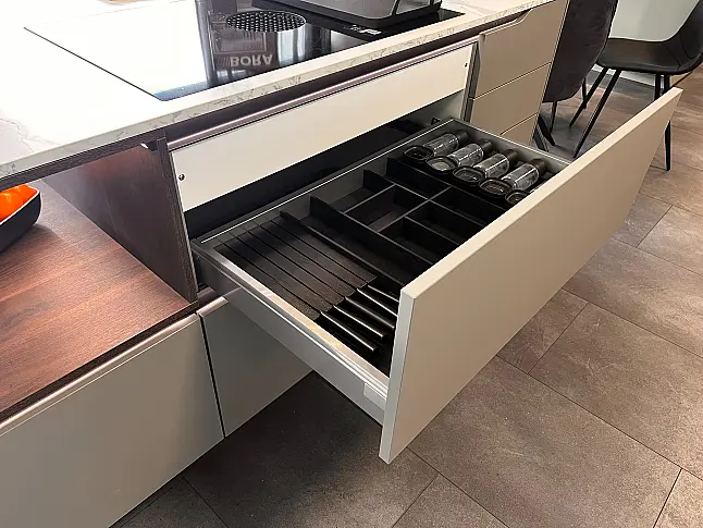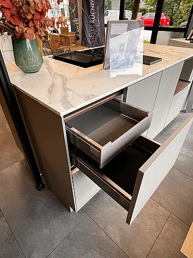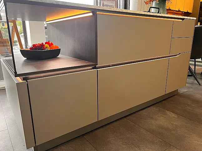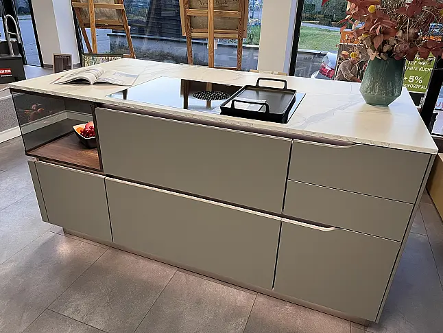 Moderne Kochinsel Nobilia Easytouch Taupegrau mit Anti-Finger Print und Keramik-Arbeitsplatte