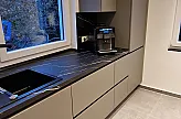 38 mm starke Arbeitsplatte in Marmor Venato Nero Nachbildung inkl. passender Rückwand und Tisch