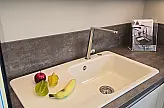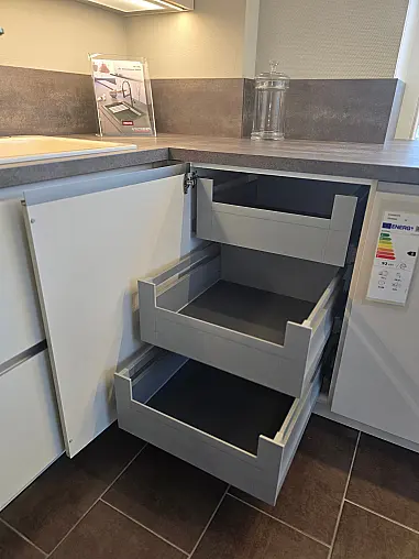 Außerdem ist eine hochwertige Keramikspüle mit Abtropffläche (SystemCeram) sowie ein 5fach Müllsystem unter der Spüle verbaut.