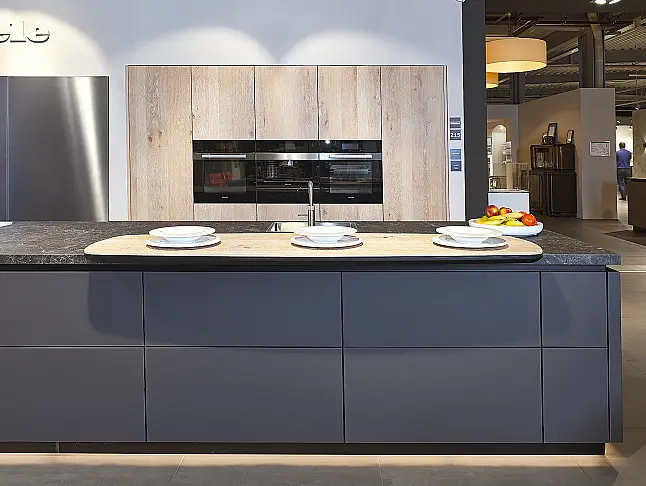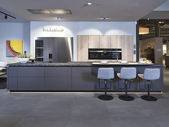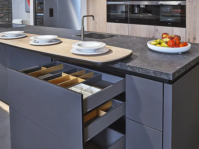 next125 Designküche in Lavazwartem Mattglas & Eiche (UNIKAT by Ekelhoff)