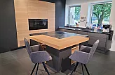 Tauchen Sie ein in die Welt von Selektion D – einer exklusiven Designerküche, die Eleganz mit Funktionalität vereint. Die Steingrau Metallic Acrylglas-Fronten kombiniert mit dem warmen Eiche-elegant Echtholz schaffen eine harmonische und einladende Atmosphäre, die Ihre Sinne verzaubern wird. Der grifflose Stil und die Insel mit integrierter Theke machen diese Küche zum Zentrum Ihres Zuhauses.
