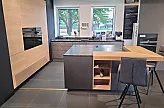 Selektion D Steingrau metallic Acrylglas / Eiche-elegant Echtholz exklusive Designerküche