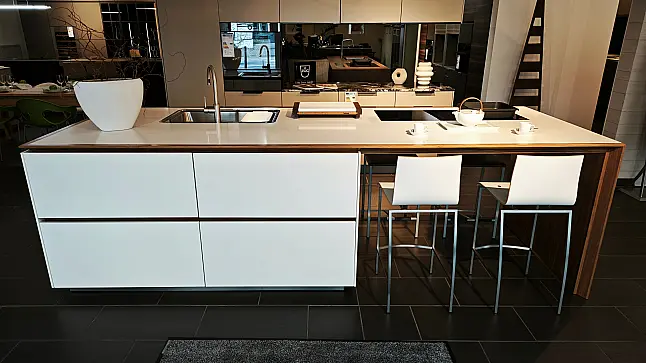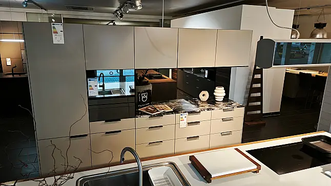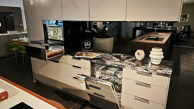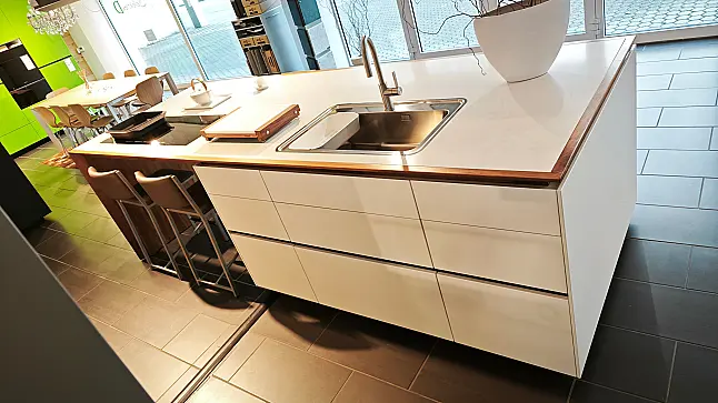 Eggersmann Karat Mattlack 329 Lack Cappuccino + 380 Lack Weiß Komplett freistehende Insel Küche / Raumtrenner