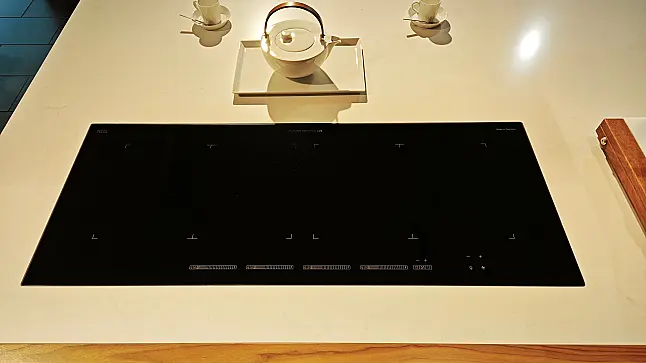 Verbaut in der Insel Platte ist das Erge Induktionskochfeld KIS100-DS und die Intra Spüle Eligo EL78