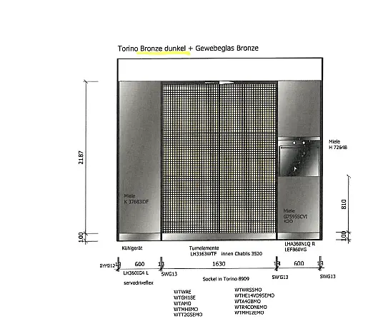 Hochschrank-Seite: Breite 2890 und Tiefe 655
