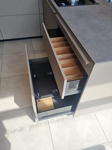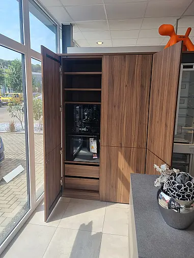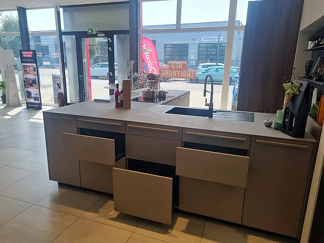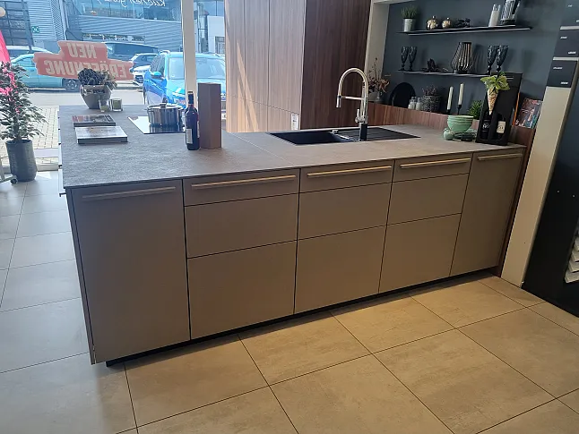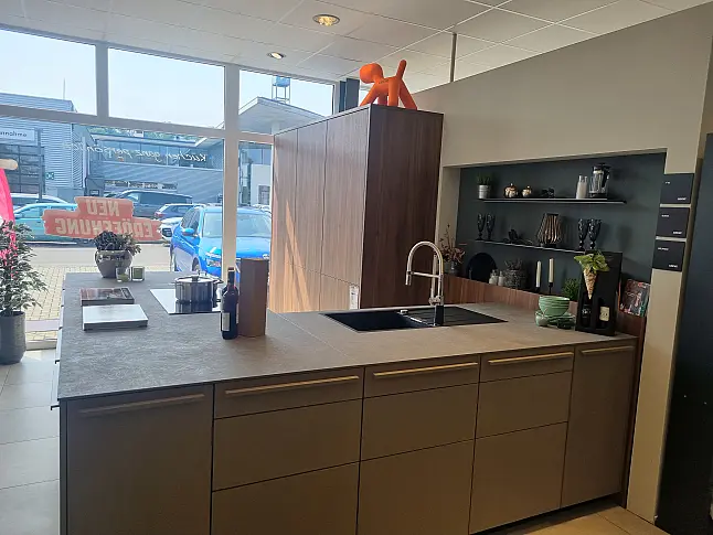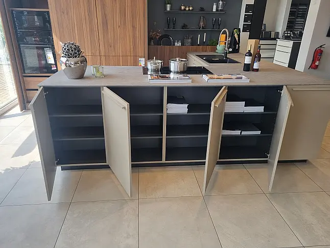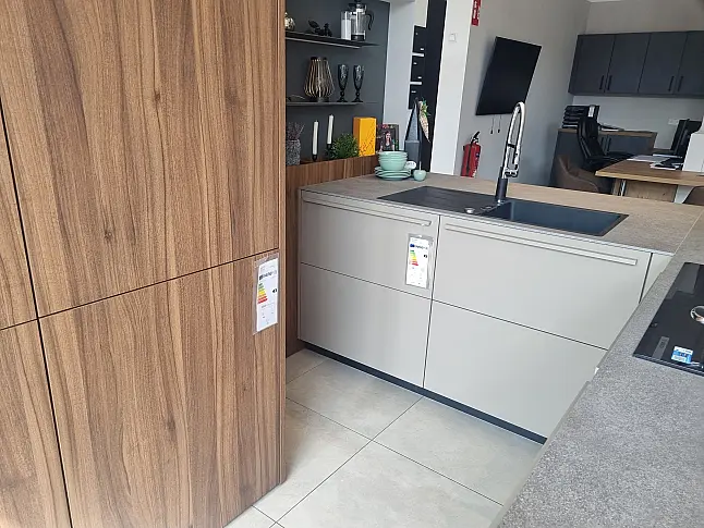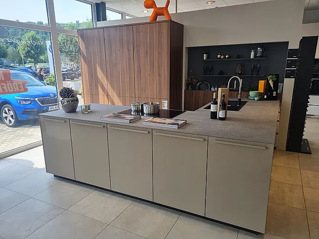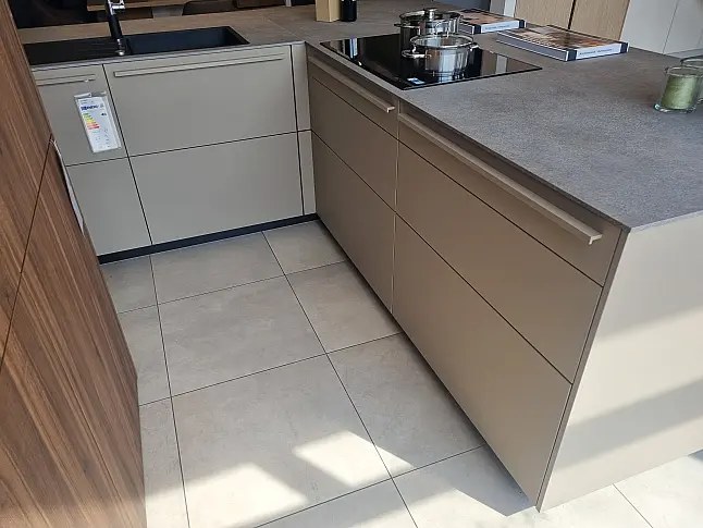 Erleben Sie Luxus pur in Ihrer Küche mit der Leicht - Fenix Orlando / Bondi in Taupegrau mit Nussbaum NB. Diese designorientierte L-förmige Küche ist das perfekte Herzstück für Ihr Zuhause und verbindet höchste Funktionalität mit atemberaubender Ästhetik.