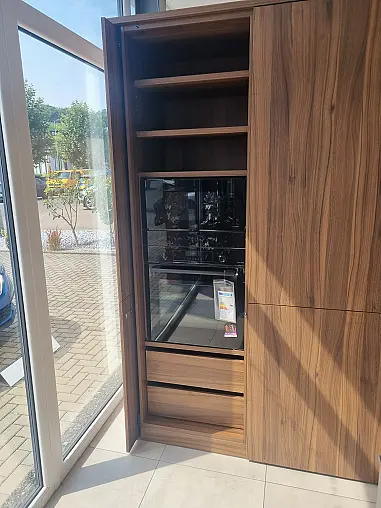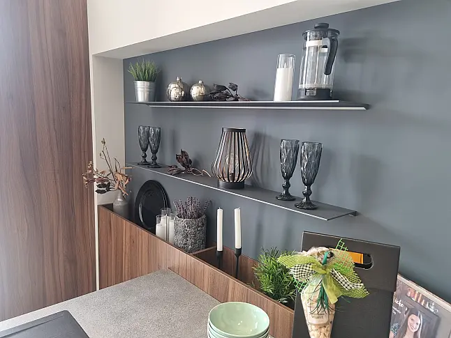 Die matt gehaltenen Frontdekore in geschmackvoller Farbkombination sorgen für einen eleganten, modernen Look, während der hochwertige Nussbaum NB Wärme und Natürlichkeit ausstrahlt. Die klare Linienführung und das raffinierte Design von Leicht Küchen verwandeln Ihre Küche in einen Ort, an dem Kochen zum Erlebnis wird.