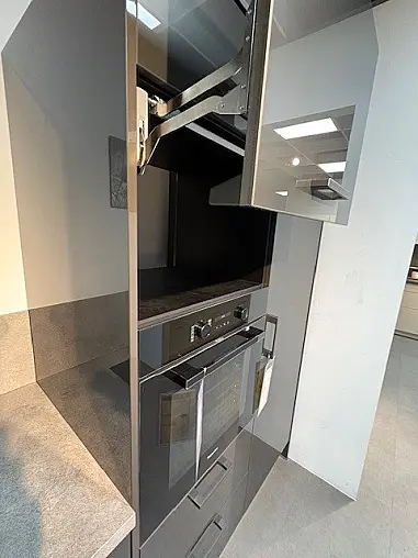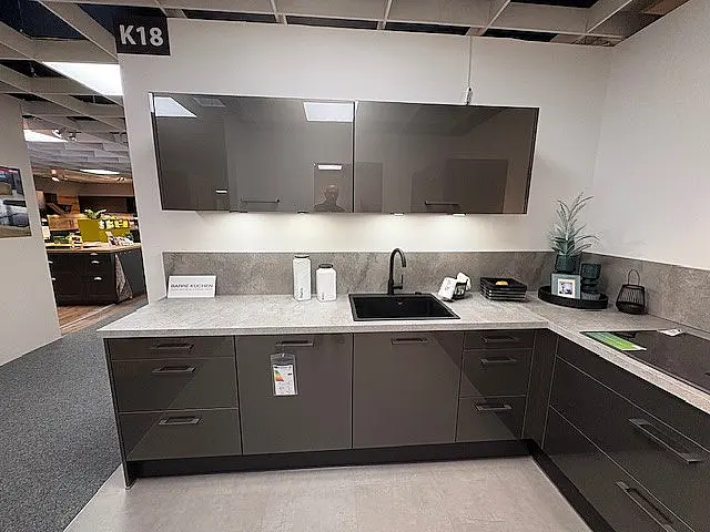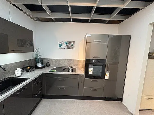 Barre Küchen Rauvisio Titanio HG Glaslaminat Moderne L- Küche mit hochwertiger Ausstattung