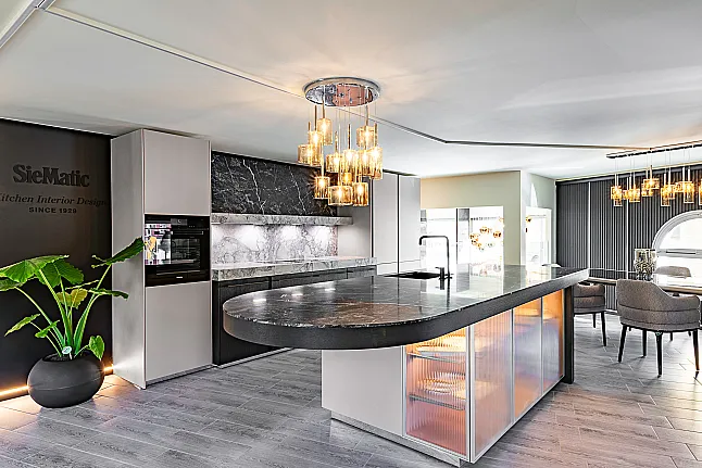 Das ausdrucksstarke Design der SieMatic MONDIAL spricht eine minimalistische, moderne und geometrische Formsprache ohne traditionelle Ornamentik und Stilistik. Mit kühnen Farben und Formen, gepaart mit expressiven Materialien und Materialstärken, transzendiert sie die Grenzen des Küchendesigns. Und öffnet eine emotionale Welt aus Opulenz, Simplizität und Sinnlichkeit.