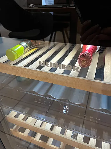 Schüller Siena. L 187 m Onyxschwarz. Nische in Eiche natur Küche in schwarz mit Weinkühler
