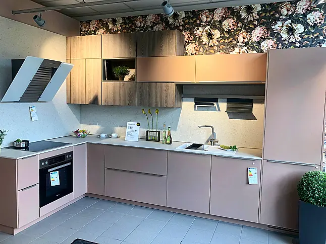 Nobilia Senso Lachs mit Bergamo Eiche Dekor Stylische schöne L Küche