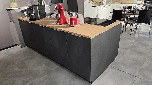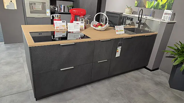 Entdecken Sie die Häcker AV 2010 in Zement Dunkel – Ihre Chance auf eine hochwertige Ausstellungsküche mit 51% Ersparnis! Diese zeitlos-moderne Küche vereint Eleganz und Funktionalität:
