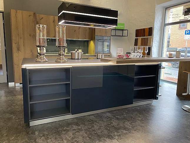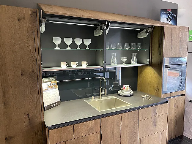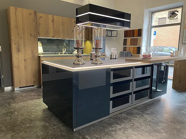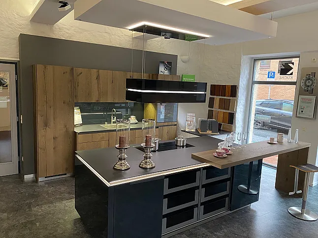 Beckermann Dover Risseiche Echtholzfunier & Nova HGL Anthrazit Exclusive Musterküche aus dem Hause Beckermann Küchen