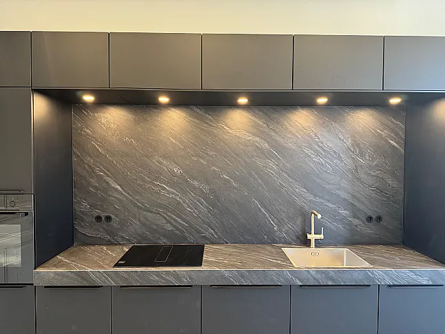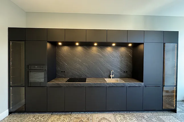 Nobilia Grafitschwarz ultramatt Moderne Küche mit Keramikarbeitsplatte