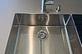 Das handgeschweißte Spülbecken aus Edelstahl ist nahtlos integriert und sorgt nicht nur für eine außergewöhnliche Optik, sondern auch für höchste Funktionalität und Langlebigkeit.