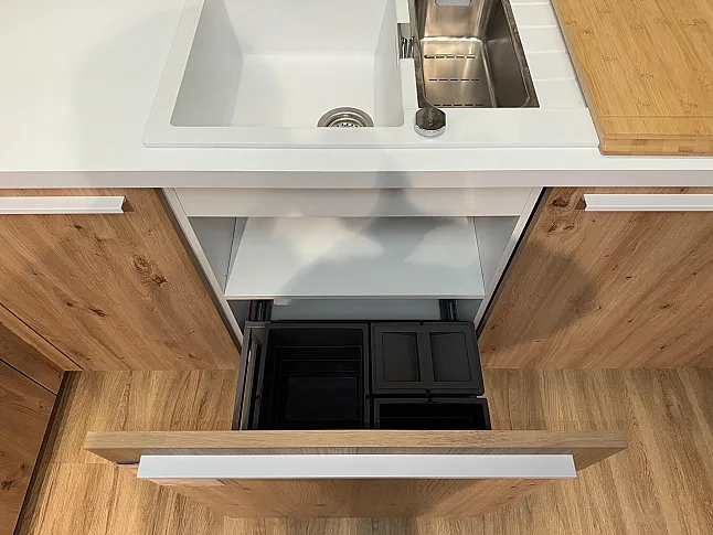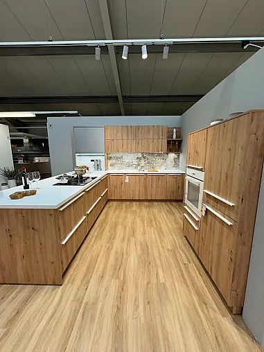 Diese hochwertige Küche vereint modernes Design mit natürlichem Charme. Die großzügige Planung und die helle Holzoptik sorgen für ein freundliches, offenes Ambiente, das zum Kochen und Verweilen einlädt. Robuste Materialien und eine erstklassige Verarbeitung garantieren Langlebigkeit und zeitlose Eleganz.