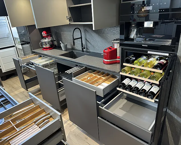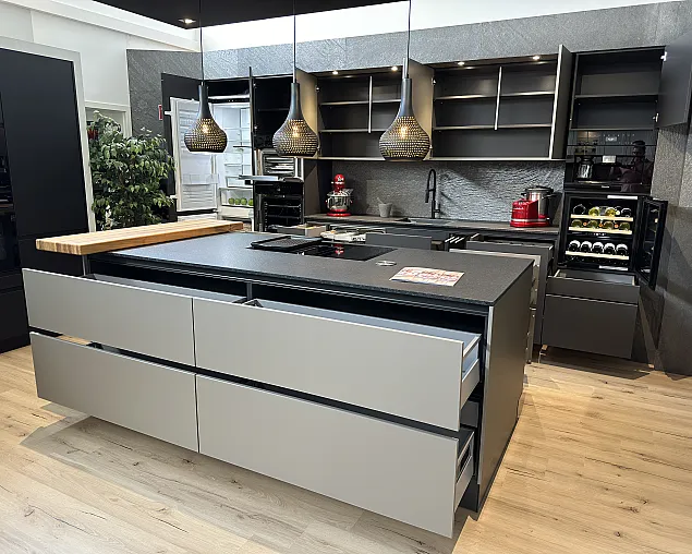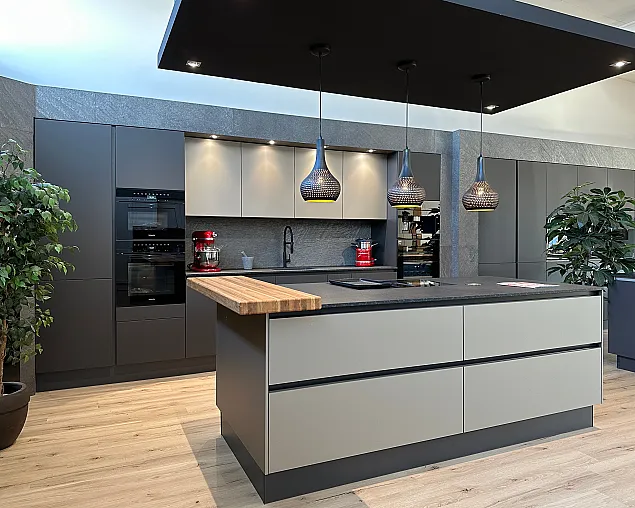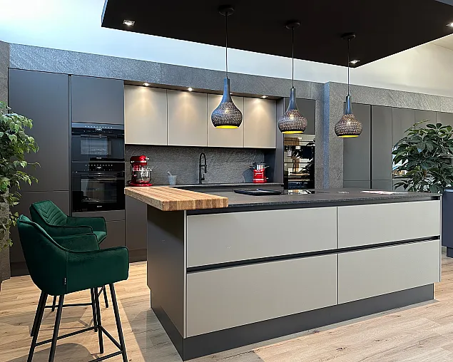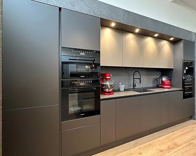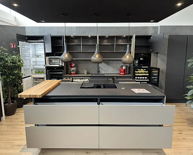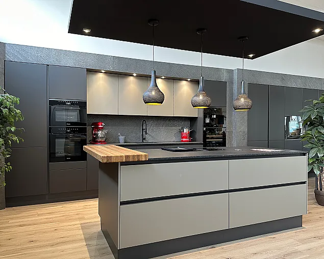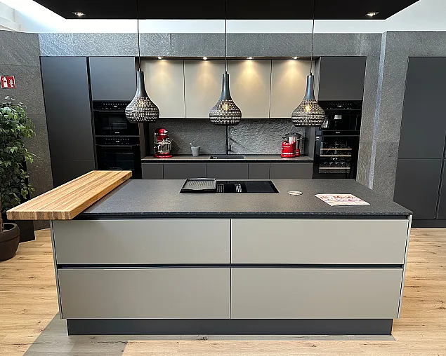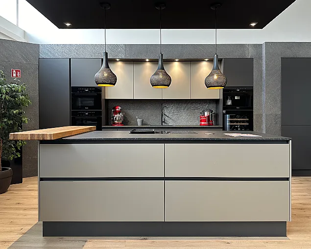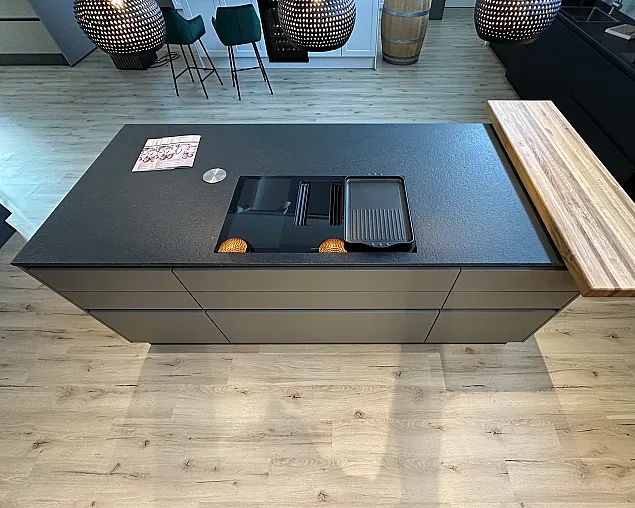 Diese bis ins Detail außergewöhnlich umfangreich und luxuriös ausgestattete Musterküche des renommierten Schüller Küchen Werkes wird Sie und Ihre Gäste begeistern! Sie zeichnet sich aus durch die wunderbar harmonische Kombination der teuersten Lava- und Taupe-farbenen Fronten der Schüller Collection mit wunderschönen Arbeitsplatten aus geflammtem afrikanischem Nero Assoluto. Edles Zubehör und begehrenswerte Geräte machen die Ausstattung dieser Verwöhn-Küche perfekt und lassen keine Wünsche offen!