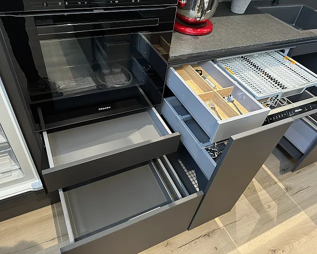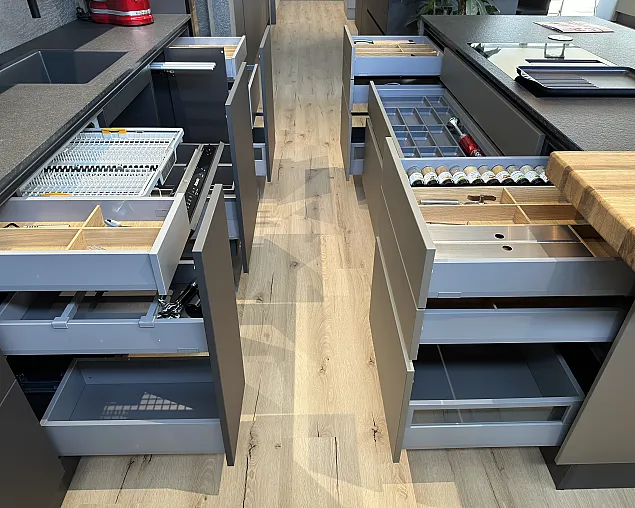 - An jeder Stelle, an der es sinnvoll möglich ist, sind Auszüge und Schubladen in dieser Küche verbaut, sogar auch in der Rückseite der Insel! (Insgesamt haben wir 23 Schubladen und Auszüge in dieser Küche gezählt!)