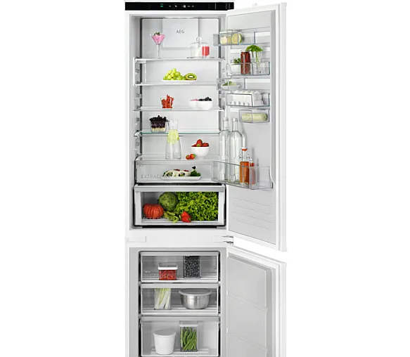 - einer schlichtweg begeisternden, ebenfalls ausgesprochen reichhaltigen und hochwertigen Geräteausstattung. Im rechten Hochschrank sitzt z.B. der Kühlschrank im außergewöhnlich großen Sondermaß und mit genialer Flexibilität: Die "Multi Switch"-Schubladen hinter der unteren Tür können entweder als zweiter Kühlbereich oder als Gefrierschubladen eingestellt und verwendet werden - einfach so, wie es für Sie gerade am nützlichsten ist! Näheres zu den beiden speziellen Frischeschubladen in der Mitte erfahren Sie weiter unten bei den Detailbeschreibungen der enthaltenen Geräte.