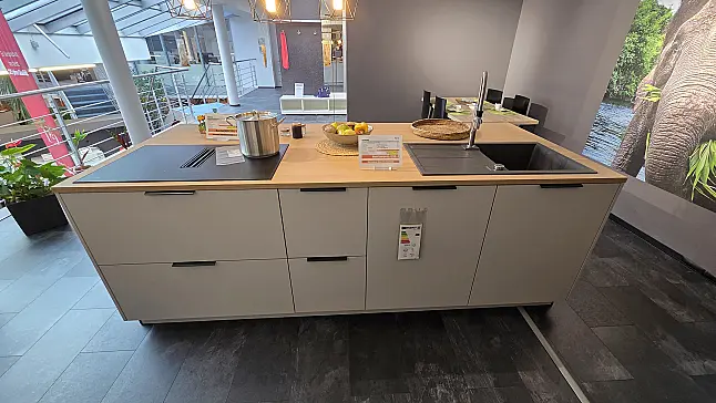 Erleben Sie eine Küche in harmonischem Sandgrau mit Insel und Einzelzeile, die Eleganz und Funktionalität vereint. Ausgestattet mit hochwertigen AEG-Geräten, bietet dieses Ausstellungsstück 53 % Ersparnis! Perfekt für Weimar und Umgebung. Fragen Sie jetzt über KüchenAtlas an und sichern Sie sich Ihr Traumküche-Erlebnis.