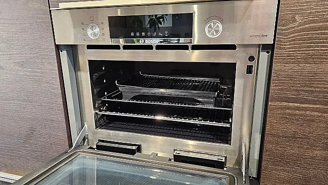 Arbeitsplatte: Dekton 20 mm stark, 2890 mm B x 1195 mm T, Farbe Galema