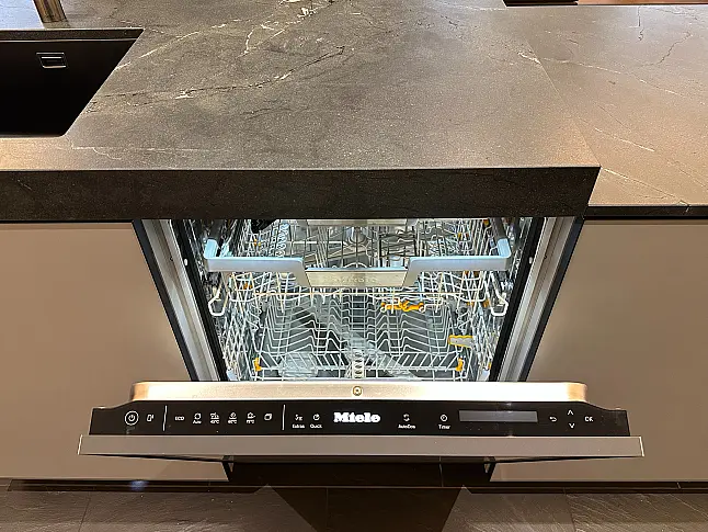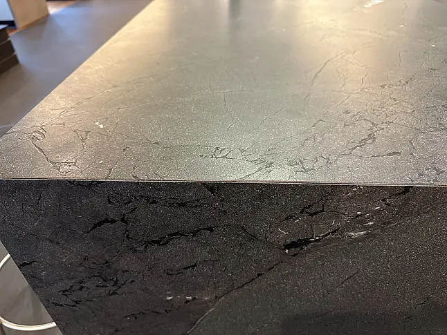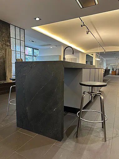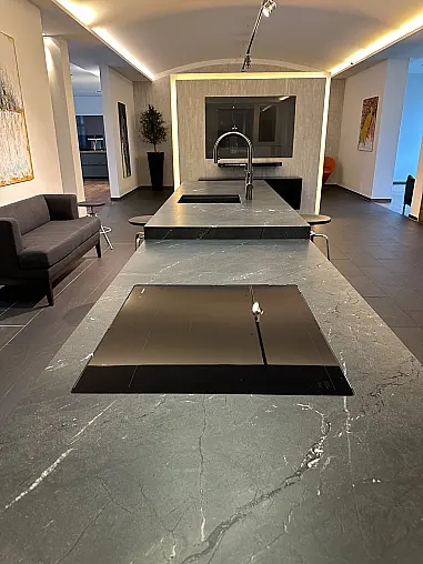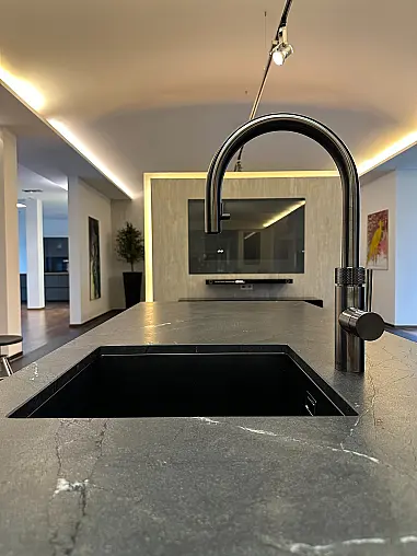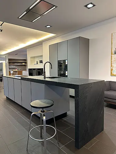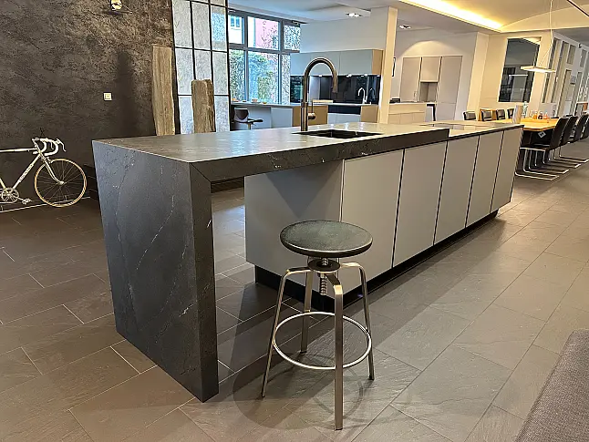 Ein weiteres Highlight dieser Küche ist die Natursteinarbeitsplatte, widerstandsfähig gegen Hitze, Kratzer und Flecken. Sie vereint Robustheit mit einer edlen, samtigen Haptik und macht die Küche zum luxuriösen Mittelpunkt Ihres Zuhauses.