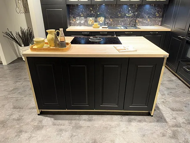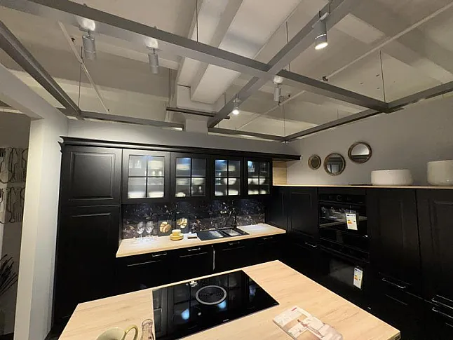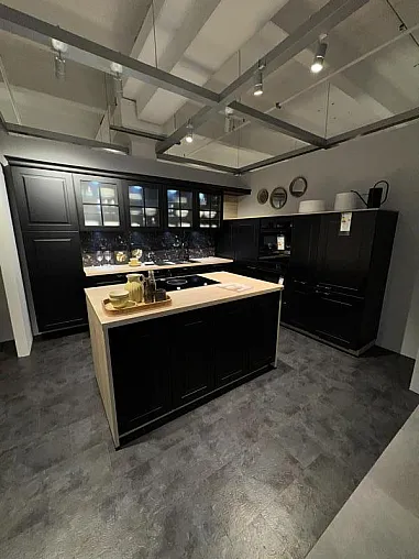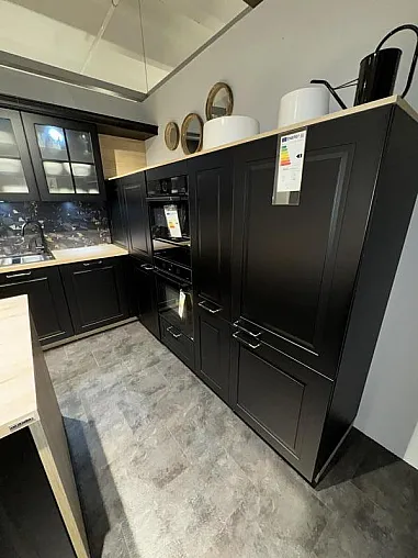 Die stilvolle Nobilia Sylt 706 in elegantem Schwarz vereint modernen Landhauscharme mit innovativer Technik. Diese Ausstellungsküche aus der Küchenwelt StrohmeierGilb in Speyer bietet ein exklusives Design mit Rahmenfronten, Glaseinsätzen und großzügiger Kochinsel.