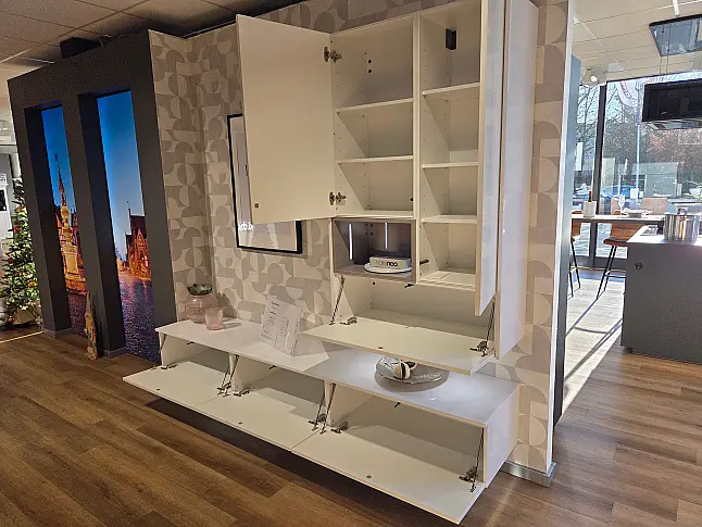 Nolte Fine Lack weiß hochglänzend/ Stark reduziert - wir brauchen Platz! Stylische Wohnwand / Sideboard (wandhängend) für einen schönen ersten Eindruck im Raum