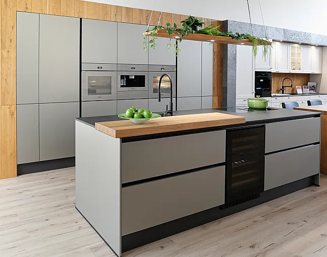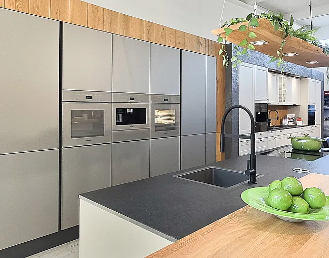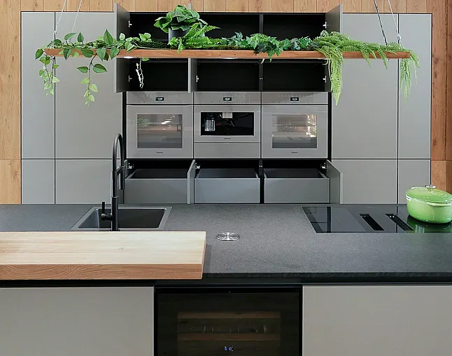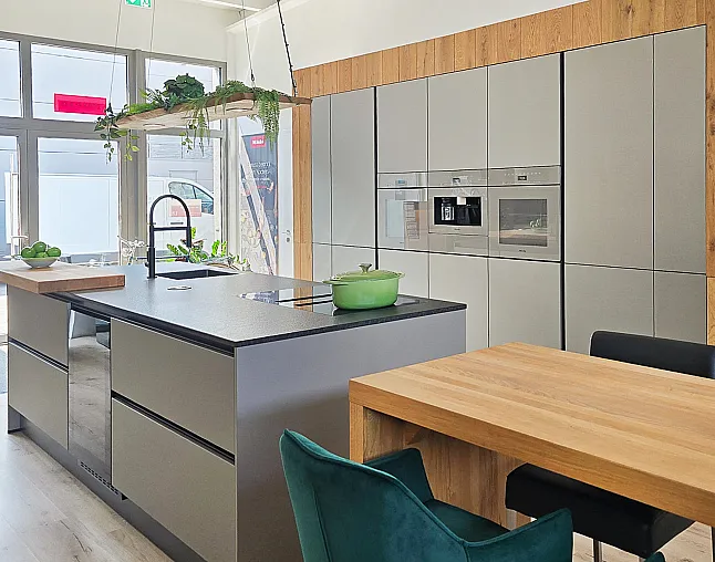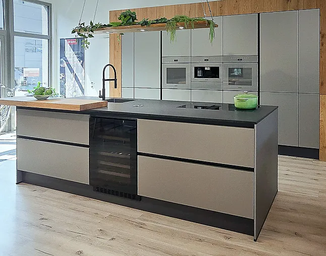 Da wir unseren Job lieben, planen wir unsere Musterküchen grundsätzlich selbst und bestellen auf den Messen keine "Planungen von der Stange" und auch keine vorgefertigten "Gerätepakete A, B oder C". Dieser Küche merkt man das ganz besonders an, denn die werden Sie in dieser Form ganz sicher kein zweites Mal finden. Was Ihre neue Lieblingsküche so besonders macht: