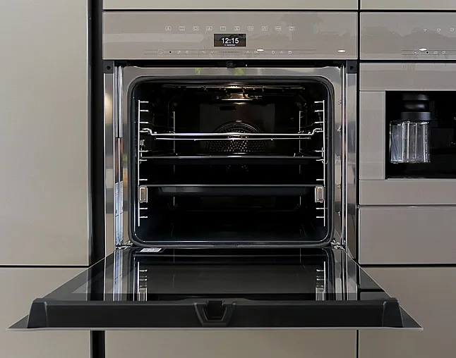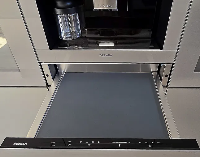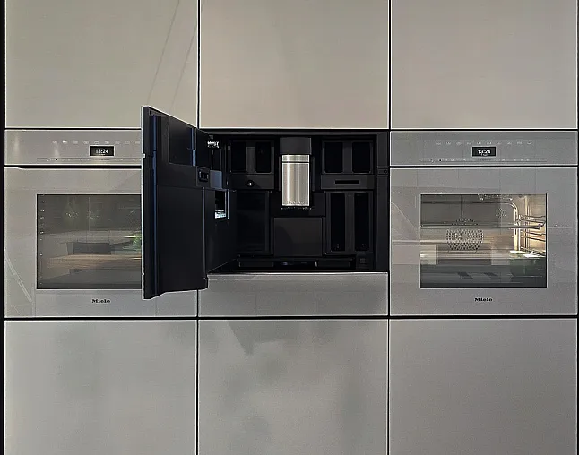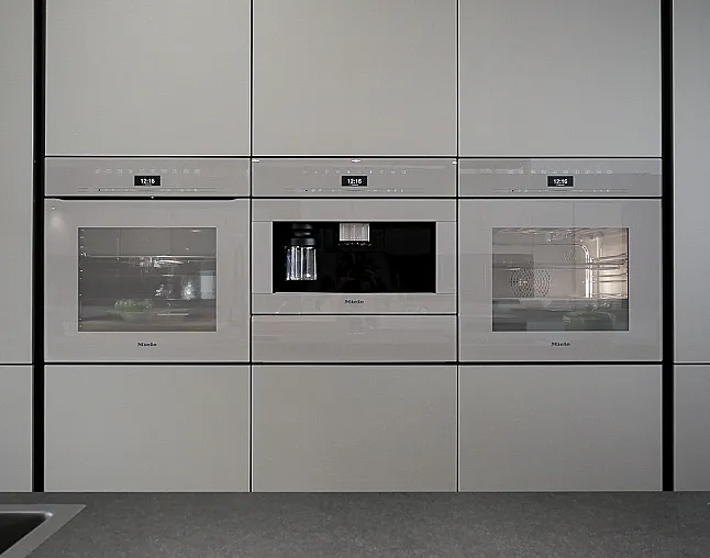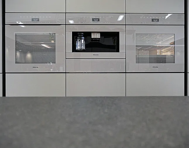 - HighTech zieht sich auch bei der Geräteausstattung durch, die Sie im einzelnen der unten angefügten Liste entnehmen können, in der wir zu jedem Gerät auch noch eine Beschreibung der wichtigsten Merkmale ergänzt haben. Erwähnen möchten wir an dieser Stelle das ganz neue Miele-Design der Gerätefronten in "PEARLBEIGE". Dieser neue Farbton passt faszinierend gut zu dem Look der zuvor beschriebenen Fronten. Der Farbton wirkt ebenso edel wie die hier verbauten Möbelfronten und gibt den nebeneinander angeordneten Geräten eine perfekte grafische Linienführung, die durch die - ebenso wie bei den Fronten - grifflose Ausführung der Geräte noch unterstrichten wird. Und HighTech ist z.B. auch der einzigartige, sich selbst regenerierende "Permalyt"-Geruchsfilter der Muldenlüftung, den es nur bei Berbel gibt und der auch dort ein teures Zusatzbauteil ist, das wir aber standardmäßig immer verbauen. Denn unsere Kunden sind begeistert davon und möchten es nicht mehr missen - weil sie froh sind, nicht mehr an teure Filterwechsel denken zu müssen und jederzeit optimal frische Filter zu haben, wie sie kein anderes System bieten kann.