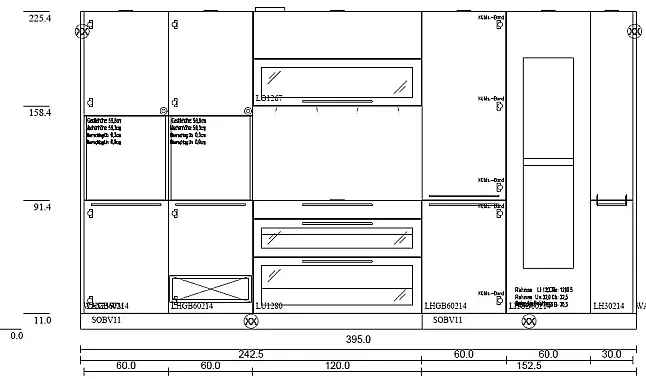 395 x 62 x 226cm (B x T x H Zeile)