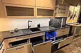 Ausgestattet ist sie unter anderem mit einem Panorama-Kochfeld von Berbel, einer hochwertigen Berbel-Dunstabzugs-Auszugshaube, einer Silgranit-Spüle mit Einhebelmischer in Schwarz-Matt von Blanco, praktischen Auszugselementen, einem Mülltrennsystem im Auszug sowie einem vollintegrierten Geschirrspüler.