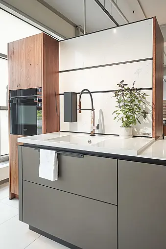 Wir verkaufen unsere schöne Musterküche des Herstellers next125. Die Küche ist sehr hochwertig und mit Fronten aus Glas und Eichenfurnier versehen. Die Arbeitsplatte ist aus Silestone im Dekor Et. Calacatta Gold Pulido. Alle Geräte sind enthalten. Die Spüle ist auch aus Silestone.
