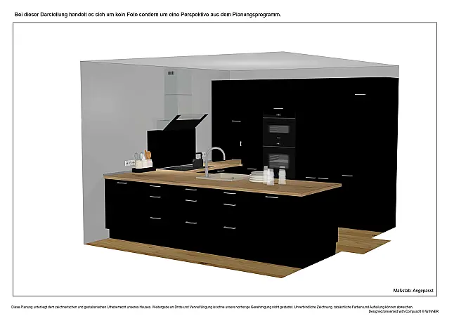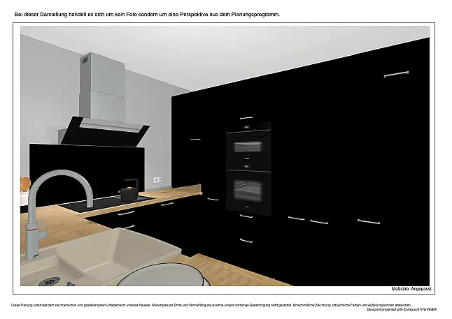 Die Küche ist vom Hersteller Nobilia. Sie ist neu und originalverpackt, sofort verfügbar und wurde bisher noch nicht montiert! Aus diesem Grund existieren keine Originalfotos der Küche, sondern lediglich Perspektiven aus unserem Planungsprogramm. Auf Anfrage stellen wir Ihnen gerne weitere Zeichnungen zur Verfügungen.